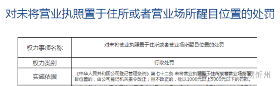 关于运营证件公示,国度法令有明白,即停业执照需置于停业场合夺目,未按施行的,责令更正;拒不更正的处以罚款;按照《食物运营许可和存案办理法子》相关,食物运营者该当正在运营场合的显著吊挂、摆放纸质食物运营许可证副本或者展现其电子证书。