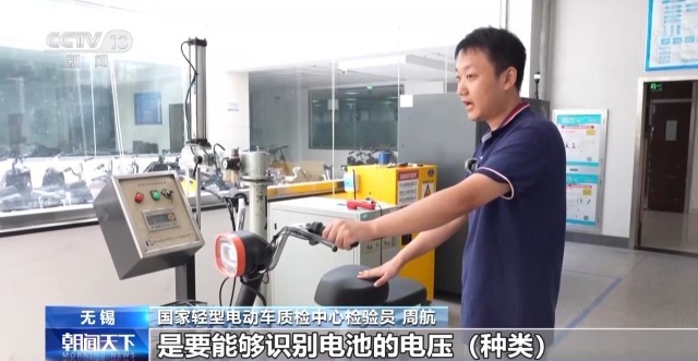 国度轻型电动车质检核心查验员 周航:新国标要求对于节制器来说,可以或许识别电池的电压(品种),这台车的标称电压是48V,防中就是此辆车只能对标称48V的铅酸(电池)可以或许运转,利用户无法对电池电压进行,加强了整车的平安性。